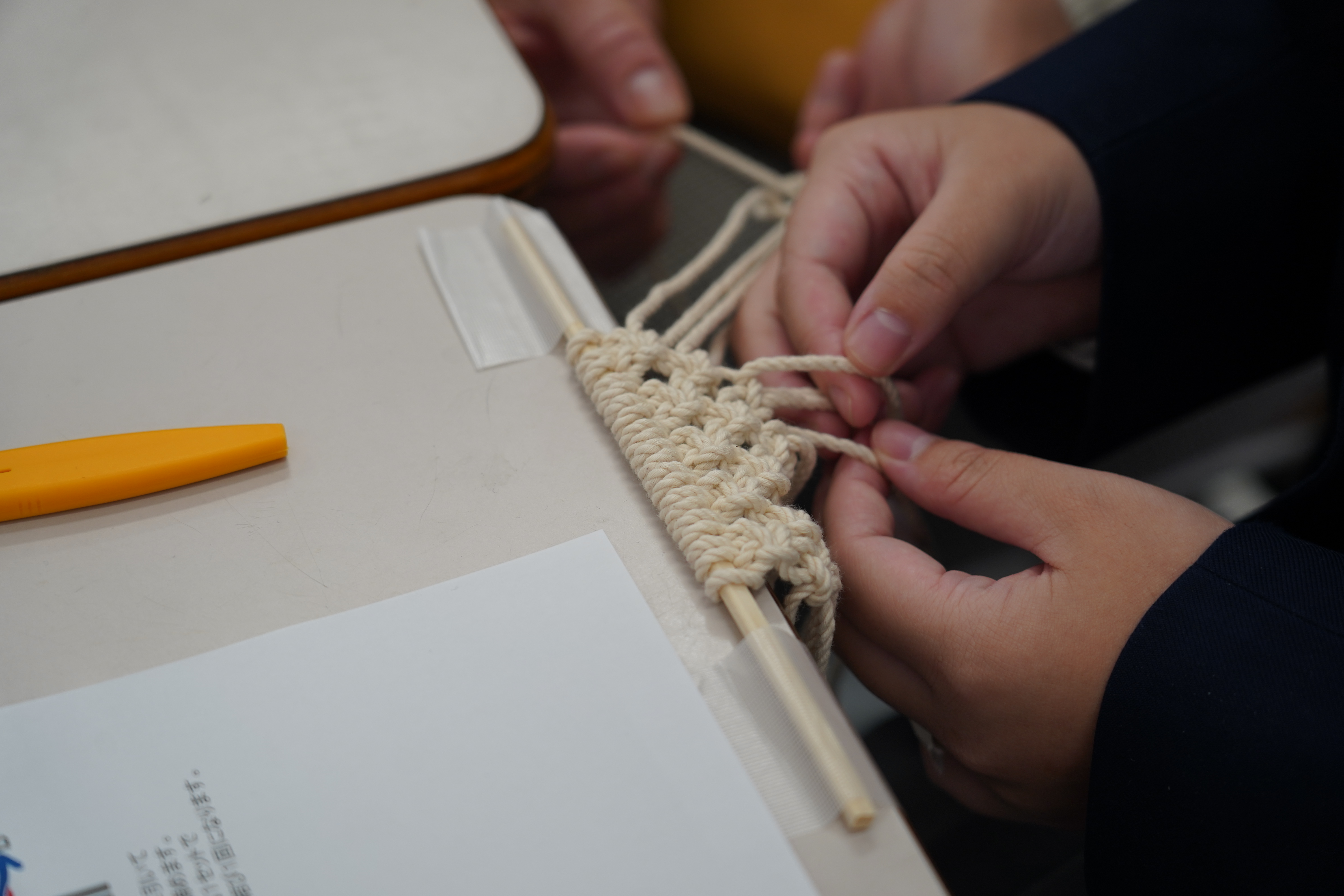 11月15日(土)第5回学校説明会を開催しました。今回の体験授業は、マクラメコースター作りやアクリルガッシュでグラデーション描き、おもしろい確率の世界について学ぶ3つの授業を行いました。中学生の皆さんは真剣な表情で取り組んでいました。