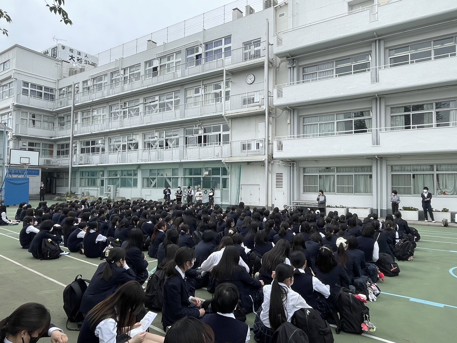 4月26日、避難訓練が行われました。緊急放送後、生徒は指示に従い校庭に避難しました。校長先生の講評後は、ブロックごとに整列し、避難経路を通りながら岸根公園まで歩きました。災害時に落ち着いて行動できるように、日頃の備えの大切さを理解してほしいですね。