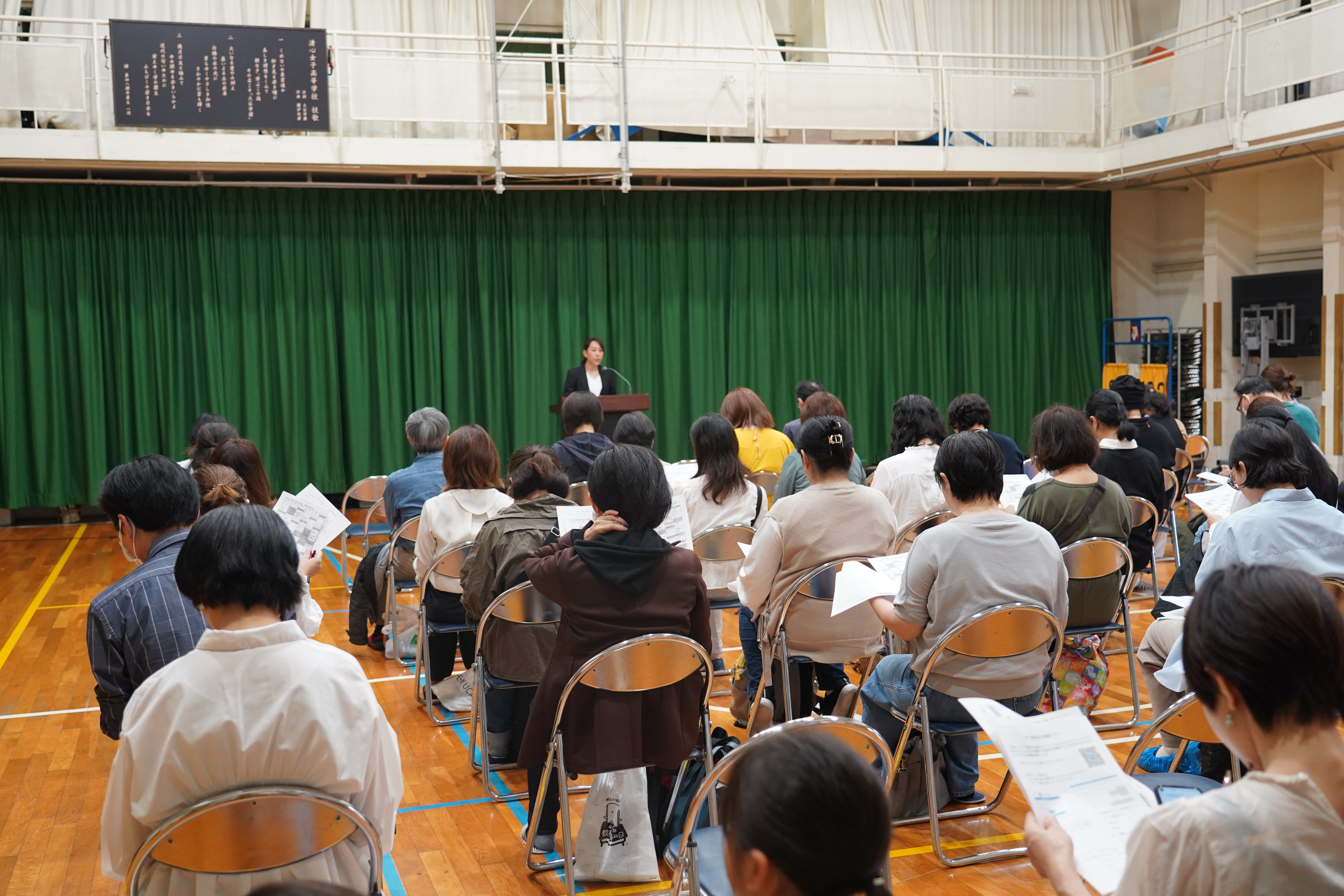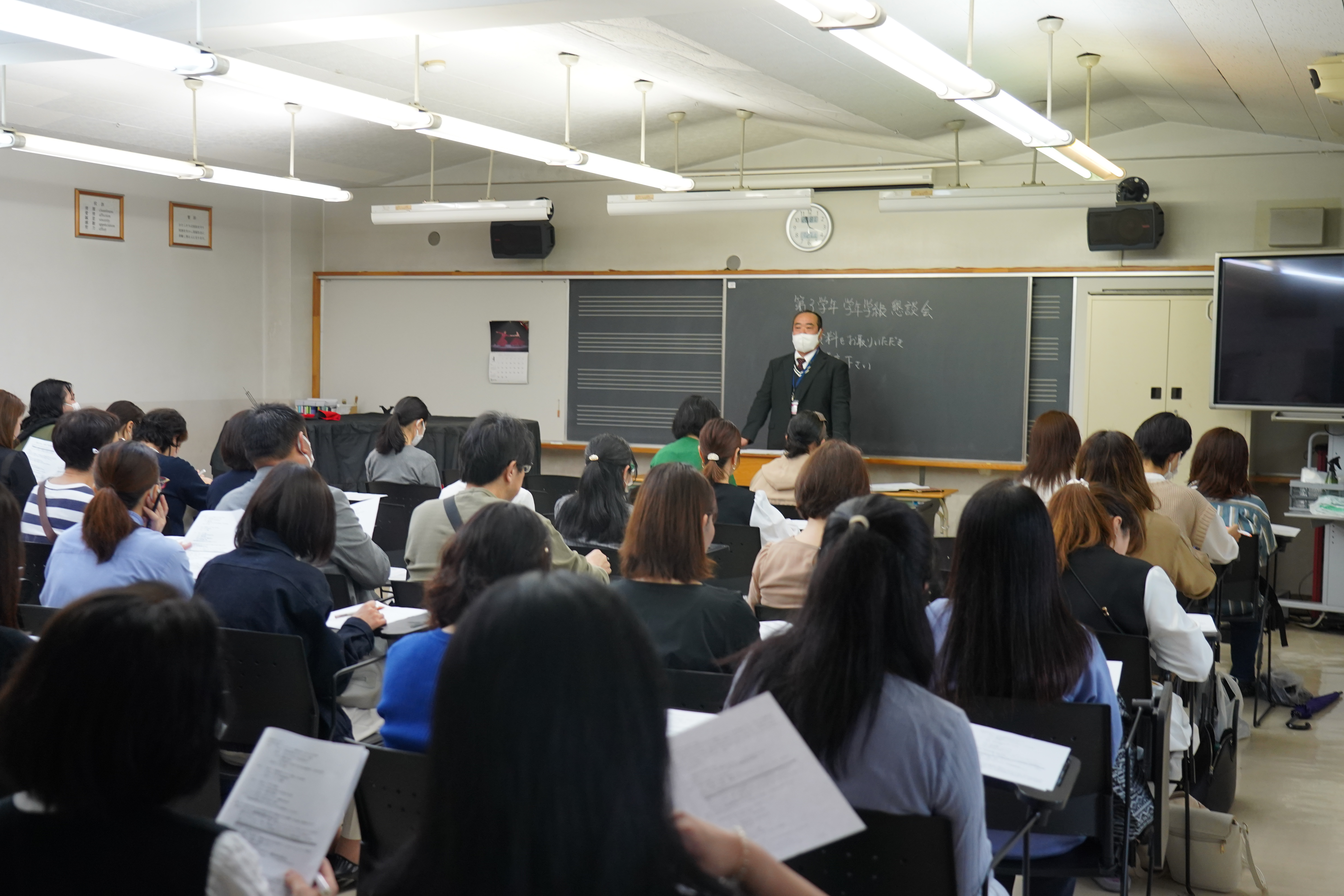 4月27日、学級懇談会が行われました。本日は多くの保護者の方に来校していただきました。学年全体に対して学年主任からの話があり、その後各クラスに分かれて、担任の先生からクラスの様子や学校生活についての話がありました。保護者の方は興味深く先生の話を聞き入っていました。