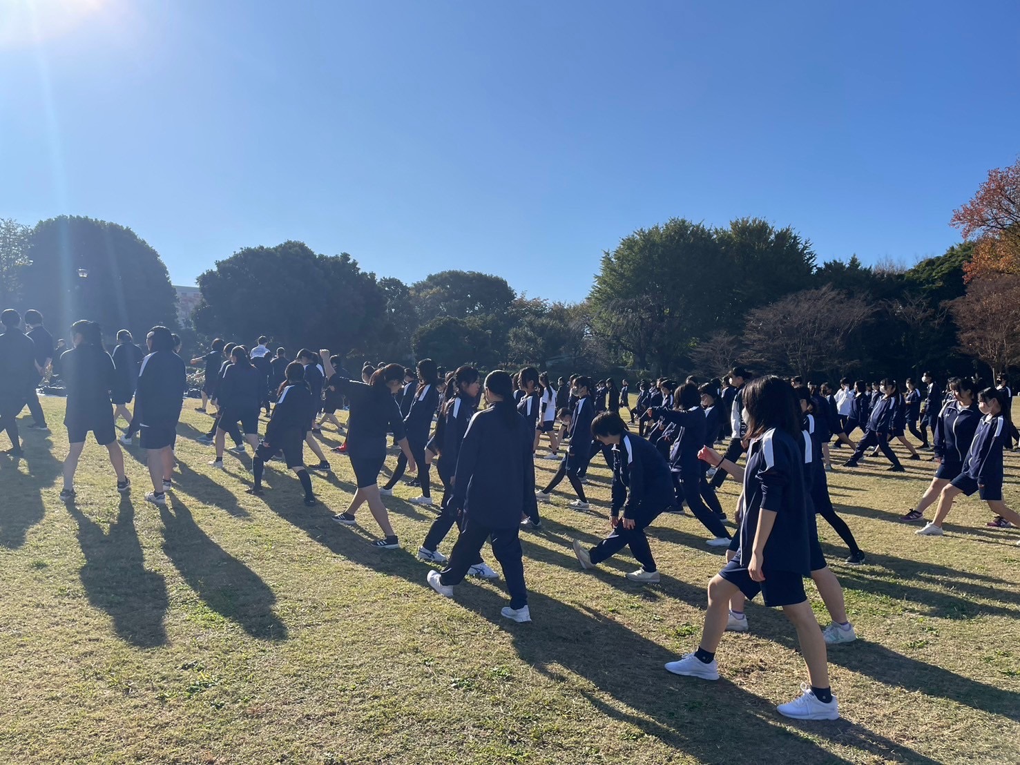 11月27日(水)、根岸森林公園でマラソン記録会を行いました。今年は、約2,5kmの距離を全学年一斉に走りました。1位の生徒は15分で完走することができました。自然豊かな場所で実施することができて、走り終わった生徒は達成感に満ち溢れていました。
