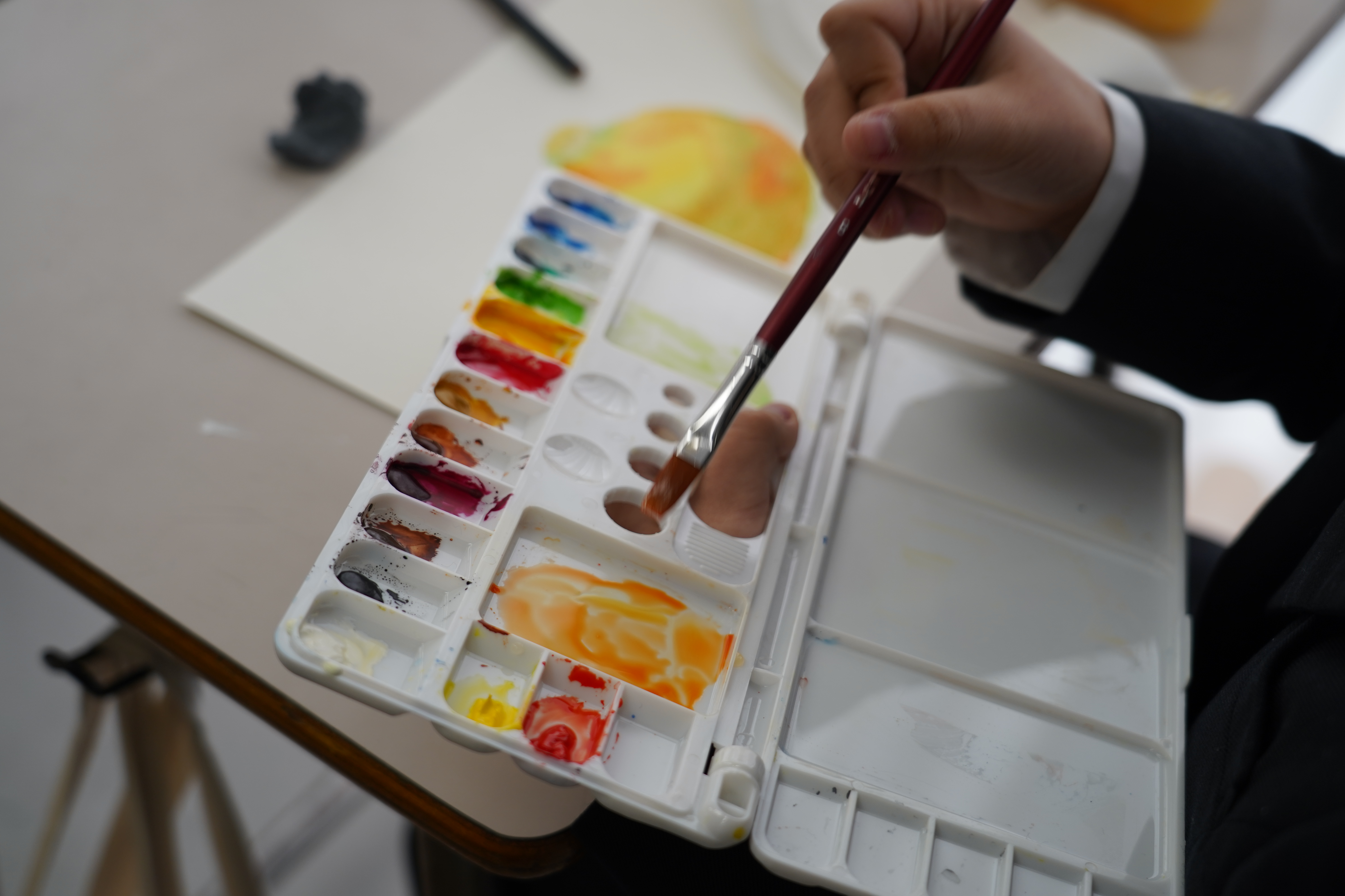 12月6日(土)第8回学校説明会を開催しました。今回の体験授業は「水彩画描き」や「かんたんえほん作り」、「ネイティブの先生と話す」授業を行いました。今年度の学校説明会は次回が最後となります。是非ホームページからお申込みください。