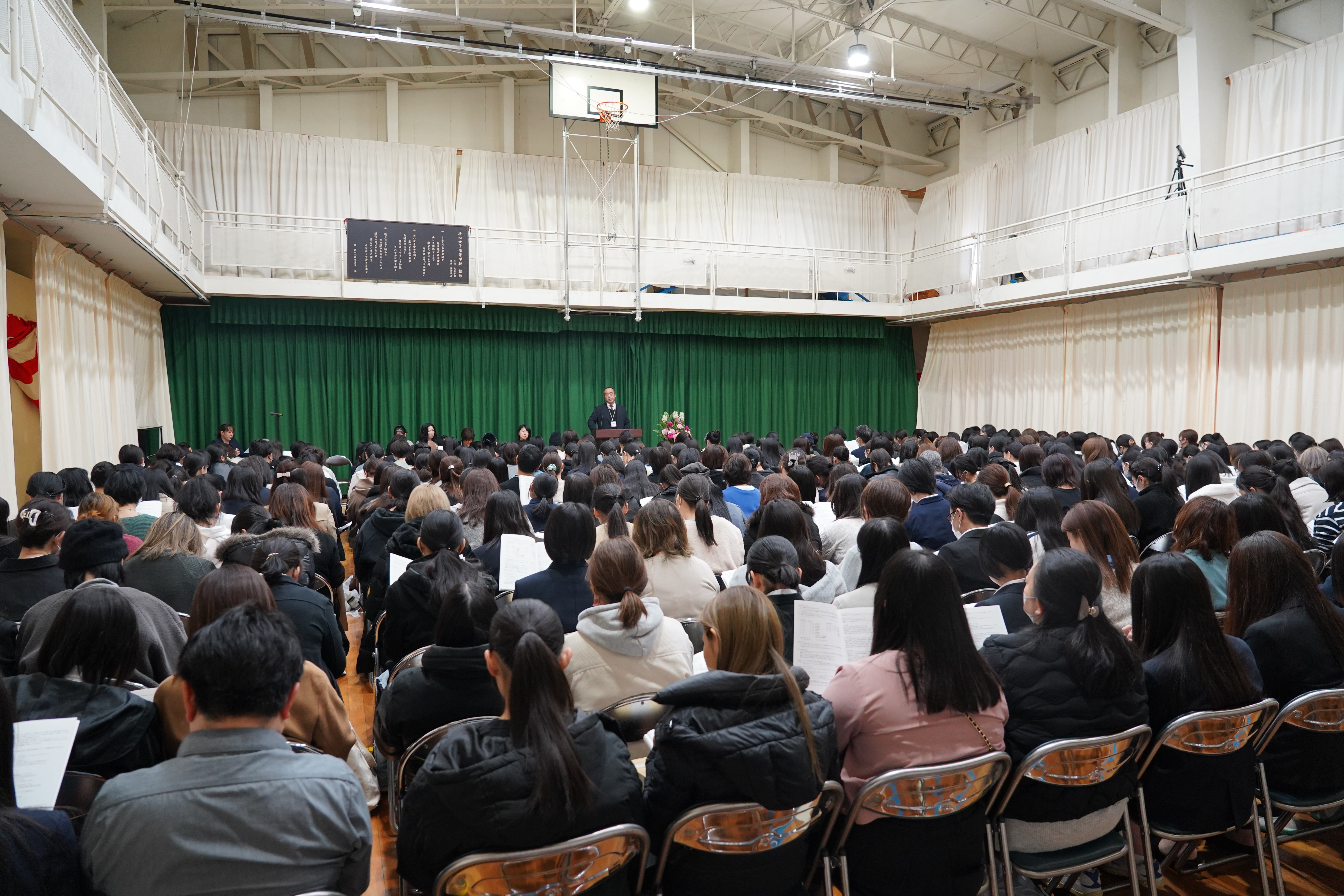 3月14日(土)、新入生オリエンテーションが行われました。体育館で全体説明の後、教科書販売がありました。新入生は少し緊張した様子も見られましたが、先生の話を真剣に聞き、学校生活について理解を深めていました。