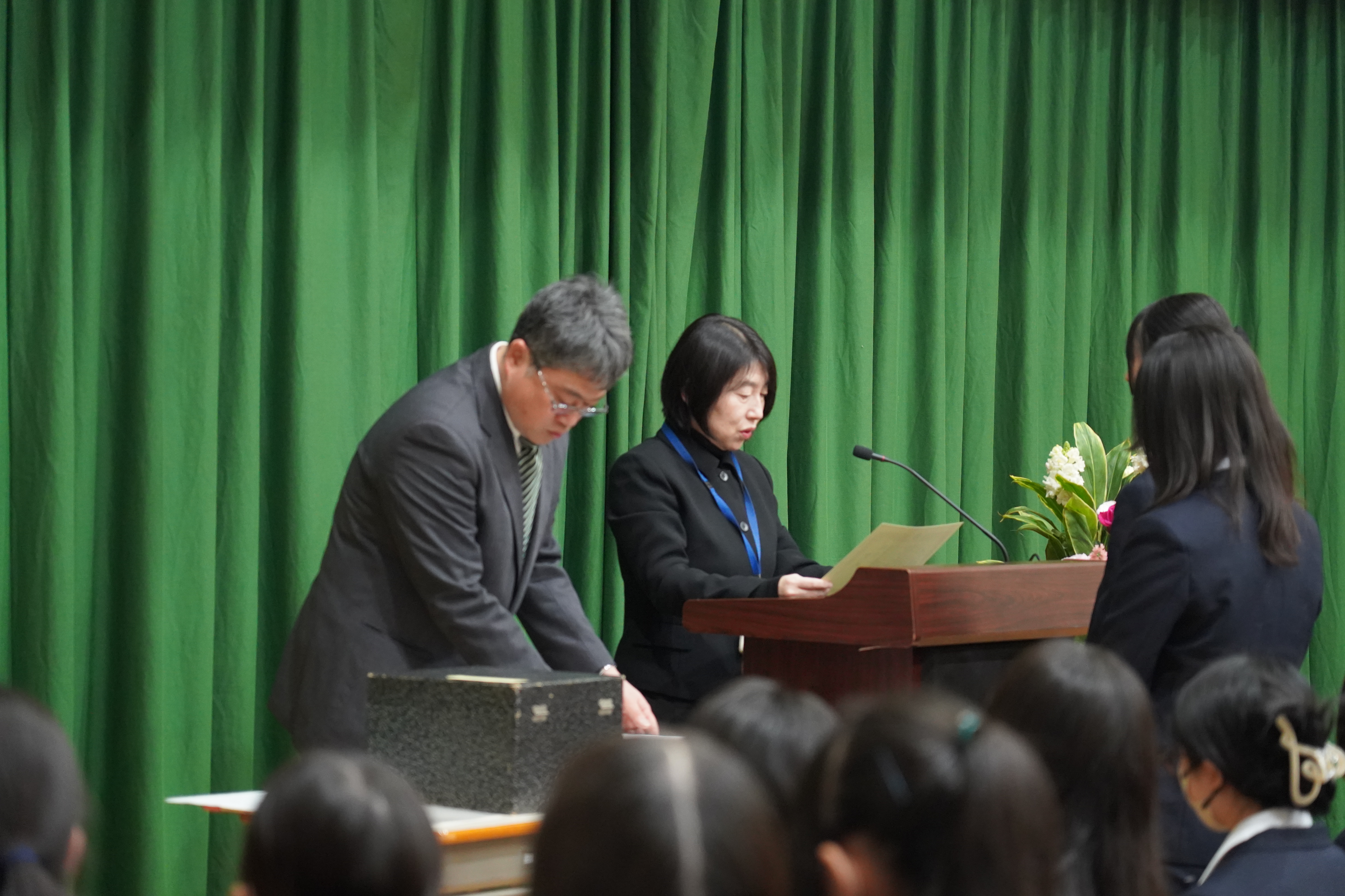 3月16日(月)、修了式が行われました。担任の先生から一人ひとりに通知表が渡されました。教室では友人と1年間の思い出を話す姿も見られ、それぞれの成長を感じる一年の締めくくりとなりました。