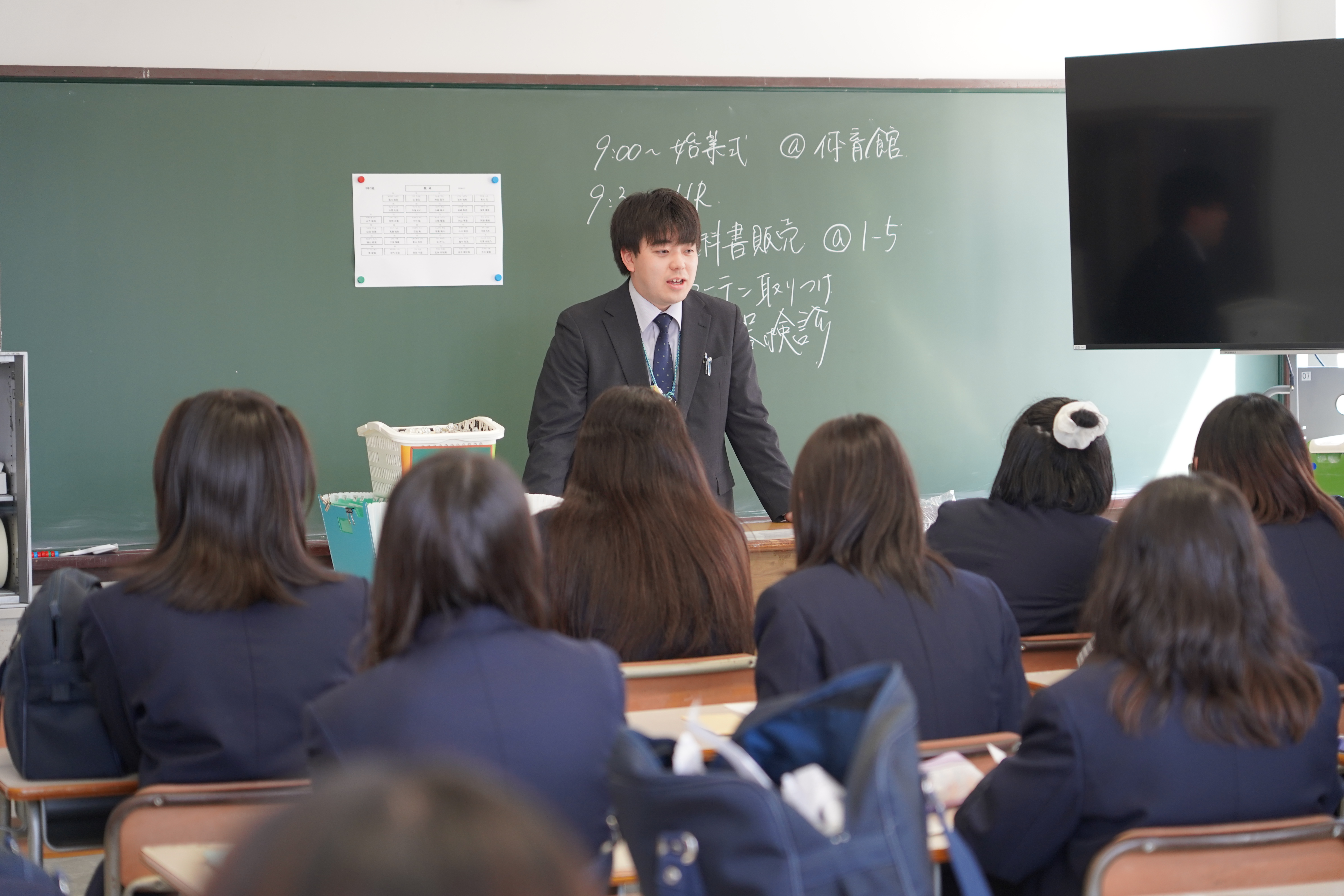4月6日(月)、新年度の始まりを告げる始業式が行われました。クラス発表の後、校長先生から担任発表がありました。発表の瞬間には歓声やどよめきが起こり、新たな仲間や担任の先生との出会いに期待を膨らませる様子が見られました。また、新しく着任された先生方の紹介も行われ、温かい拍手で迎える姿が印象的でした。