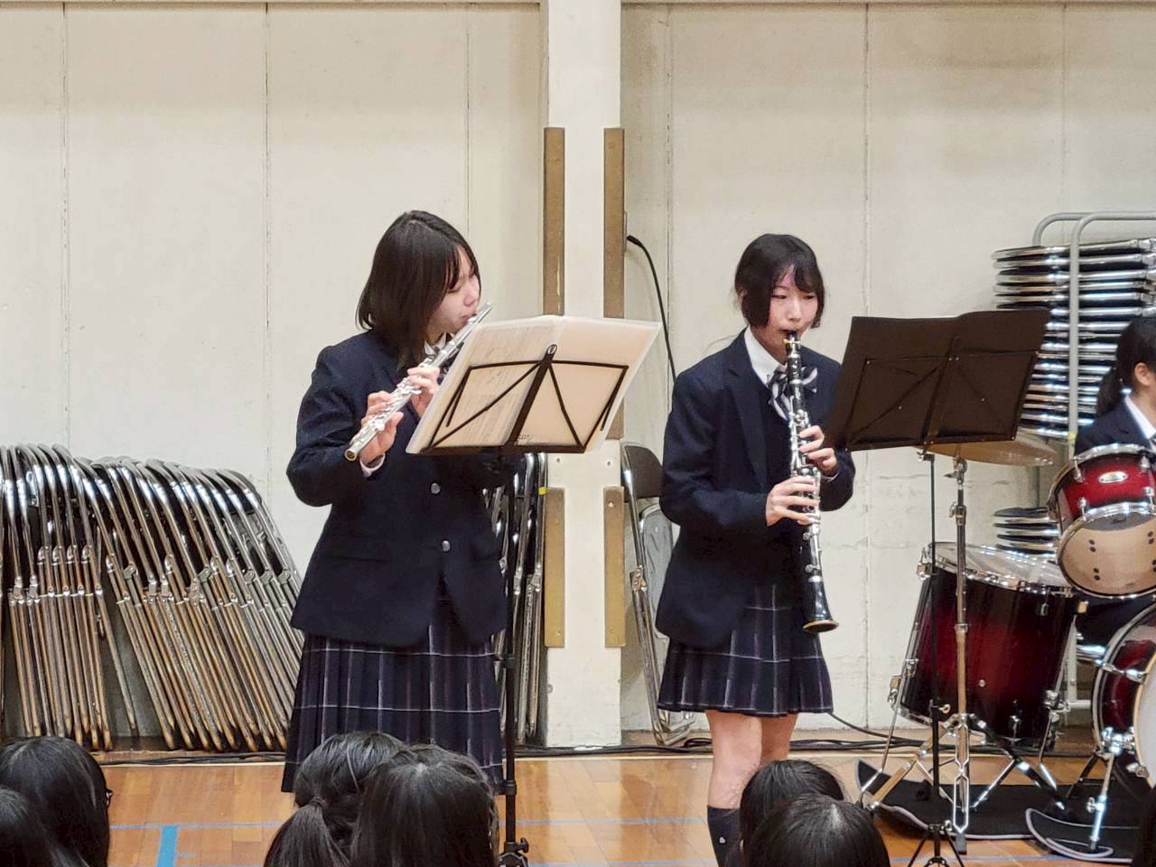 4月10日(金)、全生徒を対象に部活動紹介が行われました。各部活動が工夫を凝らした発表を行い、活動内容や魅力をわかりやすく伝えていました。実演や映像での紹介があり、会場は大いに盛り上がりました。仮入部期間は2週間あります。部活動紹介で興味を持った部に是非足を運んでみてください。